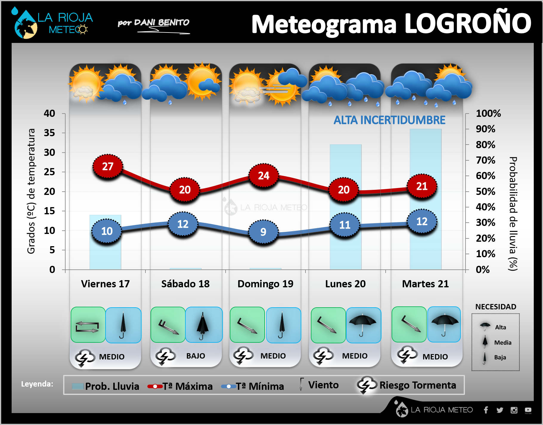 Predicción del tiempo en La Rioja del 15 al 19 de Octubre 2021